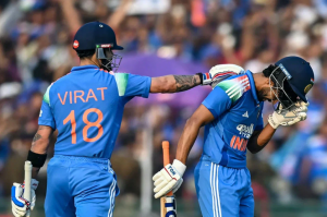 ম্যাচের শুরুতে রোহিত শর্মা বিদায়ের পর কোহলি ক্রিজে পৌঁছান এবং চতুর্থ বলে এনগিডিকে ছক্কা মারেন। এরপর দ্রুত ৫২ বলেই ফিফটি স্পর্শ করেন রুতুরাজ। কোহলি ৩৮তম ওভারের শেষ বলে তিন অঙ্কে পৌঁছে যান। আগের ম্যাচের মতোই এবারও কোহলির ব্যাটে দেখা গেল মাস্টার স্ট্রোক। রুতুরাজের দ্রুত রান এবং কোহলির অভিজ্ঞতা মিলে ভারতকে ৩৫৮ রানের বিশাল সংগ্রহে নিয়ে আসে। এই ইনিংসে লোকেশ রাহুল ৪৩ বলে ৬৬ রান এবং রাভিন্দ্র জাদেজা ২৪ রান করে দলের স্কোর সমৃদ্ধ করেন।