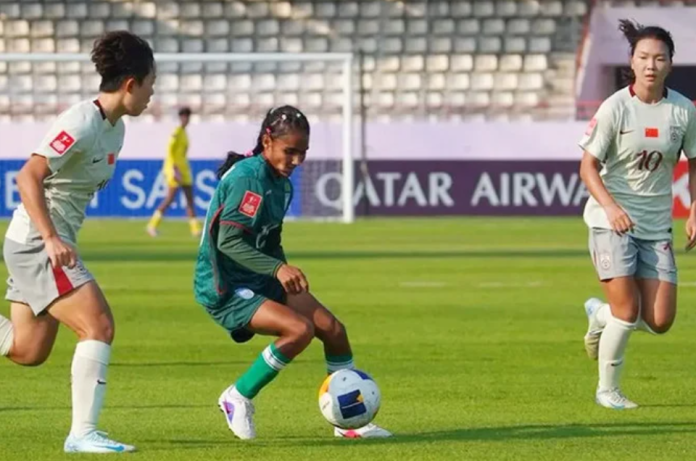 আলোর যুগ স্পোর্টসঃ বাংলাদেশের ফুটবলে চলছে ব্যস্ততা। গতকাল সাফ অ-২০ পুরুষ দল মালদ্বীপে চ্যাম্পিয়ন হয়েছে। আজ নারী অ-২০ দল থাইল্যান্ডে এশিয়ান কাপ খেলেছে শক্তিশালী চীনের বিপক্ষে। ম্যাচের প্রথমার্ধ গোলশুন্য ড্র ছিল। দ্বিতীয়ার্ধে বাংলাদেশ ২ গোল হজম করে।