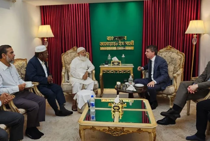আলোর যুগ প্রতিনিধিঃ বাংলাদেশ জামায়াতে ইসলামীর আমির ডা. শফিকুর রহমানের সঙ্গে ঢাকায় নিযুক্ত সুইডেনের রাষ্ট্রদূত নিকোলাস উইকস সৌজন্য সাক্ষাৎ করেছেন।