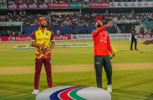 আলোর যুগ স্পোর্টসঃ সিরিজে টিকে থাকতে হলে ওয়েস্ট ইন্ডিজের বিপক্ষে দ্বিতীয় টি-টোয়েন্টিতে জয়ের বিকল্প নেই বাংলাদেশের। চট্টগ্রামের বীরশ্রেষ্ঠ ফ্লাইট লেফটেন্যান্ট মতিউর রহমান স্টেডিয়ামে আজ টস জিতে ব্যাটিং করার সিদ্ধান্ত নিয়েছেন ওয়েস্ট ইন্ডিজ অধিনায়ক শাই হোপ। এই কারণে বাংলাদেশকে আজ রান তাড়ায় নামতে হবে।