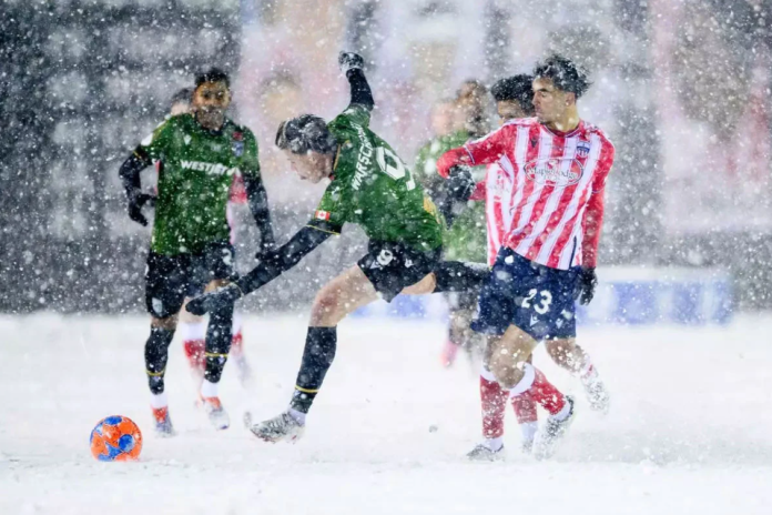 আলোর যুগ স্পোর্টসঃ অন্টারিওজুড়ে মৌসুমের প্রথম তুষারঝড়ে যখন চারদিক সাদা বরফে ঢাকা, তখন সেই ঝড়ের মাঝেই ইতিহাস লিখল কানাডিয়ান প্রিমিয়ার লিগ (সিপিএল)। প্রবল তুষারপাত, জমে থাকা বরফ আর হিমশীতল আবহাওয়ার মধ্যেও চার ঘণ্টাব্যাপী ফাইনালে লড়েছে অ্যাতলেটিকো অটোয়া ও ক্যাভালরি এফসি। শেষ পর্যন্ত অতিরিক্ত সময়ের গোলে জয় তুলে নিয়ে প্রথমবারের মতো সিপিএলের শিরোপা জিতেছে অ্যাতলেটিকো অটোয়া। সোমবার (১০ নভেম্বর) নেলসনের টিডি প্লেসে অনুষ্ঠিত এই নাটকীয় ফাইনালে ২-১ গোলে জয় পায় অটোয়া। এতে সমিত সোমের ক্যাভালরি এফসির স্বপ্নভঙ্গ হয়। স্প্যানিশ ক্লাব অ্যাতলেটিকো মাদ্রিদের মালিকানাধীন অটোয়া দলটি ২০২০ সালে লিগে যোগ দিয়েছিল, আর এবারই প্রথম তারা চ্যাম্পিয়ন হলো।