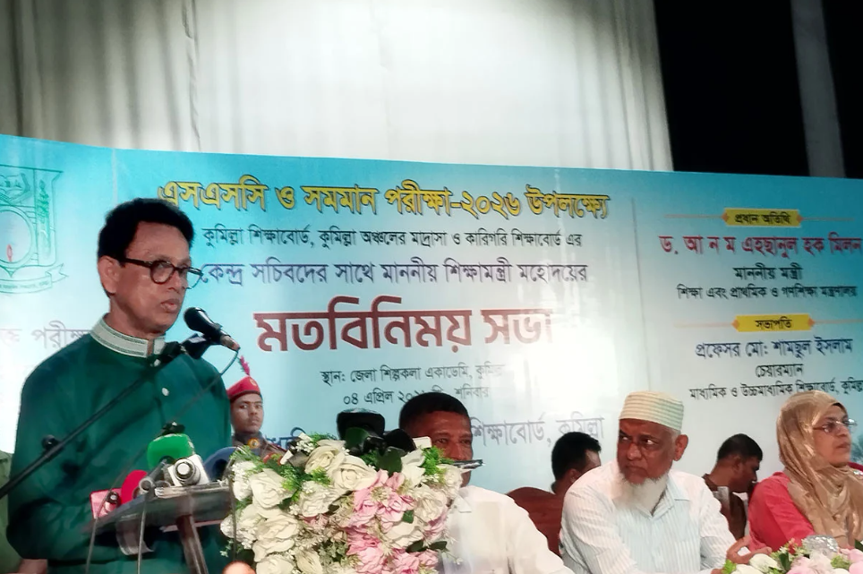 মন্ত্রী বলেন, নকলের শুরু করেছে শিক্ষকরা। বন্ধও করেছিল শিক্ষকরা। আমরা কি শিক্ষক ইমপোর্ট করেছিলাম? করিনি। সরকার যেভাবে চায় আপনারাও সেভাবে কাজ করেন। আমরা আপনাদের সঙ্গে আছি। ২০০২ সালে কুমিল্লায় রেজাল্ট নেমেছিল ২৯ শতাংশে। ২০০৩ সালে তারপর ৩৩। ২০০৬ সালে ৬৬। অর্থাৎ নকল কমার পরও শিক্ষার হার কমেছিল। ইন্টেরিম আসার পর ৬৩ তে নেমে এসেছিল। বোঝা গেলে মাঝখানে পড়াশোনা ধ্বংস হয়ে গিয়েছিল, নকল হয়েছিল।
