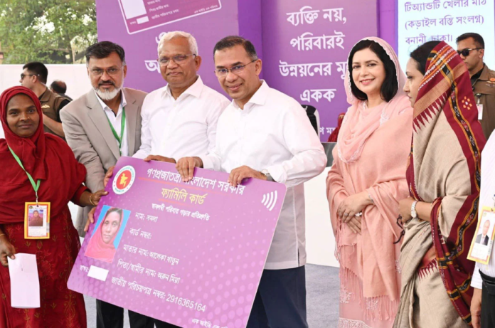 আলোর যুগ প্রতিনিধিঃ নির্বাচনি প্রতিশ্রুতি অনুযায়ী ফ্যামিলি কার্ড বিতরণ কর্মসূচির উদ্বোধন করেছেন প্রধানমন্ত্রী তারেক রহমান। মঙ্গলবার সকালে রাজধানীর বনানী টিঅ্যান্ডটি খেলার মাঠে (কড়াইল বস্তি-সংলগ্ন) এই কর্মসূচির আনুষ্ঠানিক উদ্বোধন করেন তিনি। প্রধানমন্ত্রী তারেক রহমান তার বক্তৃতায় নিম্ন আয়ের মানুষের পাশে থাকার অঙ্গীকার পুনর্ব্যক্ত করেন। তিনি জানান যে, সরাসরি ডিজিটাল পদ্ধতিতে ভাতা প্রদানের ফলে মাঝপথে অর্থ লোপাটের কোনো সুযোগ থাকবে না এবং প্রকৃত দুস্থরাই এই সুবিধা পাবেন।