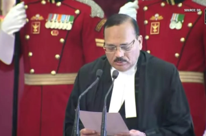 আলোর যুগ প্রতিনিধিঃ ভারতের শীর্ষ আদালত সুপ্রিম কোর্টের ৫৩তম প্রধান বিচারপতি হিসেবে শপথ নিলেন বিচারপতি সূর্য কান্ত। বিদায়ি প্রধান বিচারপতি বি আর গভাইয়ের জায়গায় স্থলাভিষিক্ত হলেন ৬৩ বছর বয়সি সূর্য কান্ত। ২০২৭ সালের ৯ ফেব্রুয়ারি পর্যন্ত এই পদে বহাল থাকবেন তিনি। সোমবার রাষ্ট্রপতি ভবনে তাকে শপথবাক্য পাঠ করান দেশটির রাষ্ট্রপতি দ্রৌপদী মুর্মু। এই শপথগ্রহণ অনুষ্ঠানে উপস্থিত ছিলেন দেশটির উপরাষ্ট্রপতি সিপি রাধাকৃষ্ণাণ, প্রধানমন্ত্রী নরেন্দ্র মোদি, স্বরাষ্ট্রমন্ত্রী অমিত শাহ, প্রতিরক্ষামন্ত্রী রাজনাথ সিংসহ বিশিষ্ট ব্যক্তিরা।