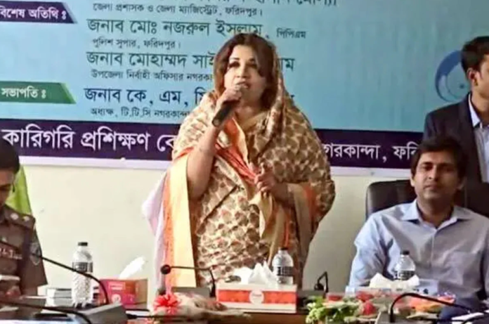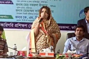 তিনি বলেন, বিদেশে লোক পাঠানোর কথা বলে যেভাবে অপরাধী চক্র বিভিন্ন অসহায় মানুষের কাছ থেকে টাকা হাতিয়ে নেয়, এদের ব্যাপারে সকলকে সতর্ক থাকতে হবে। আমাদের সরকার এদের ব্যাপারে কঠোর অবস্থানে রয়েছে। এসময় অন্যদের মধ্যে ফরিদপুরের জেলা প্রশাসক মো. কামরুল হাসান মোল্লা, পুলিশ সুপার মো. নজরুল ইসলাম, সিভিল সার্জন ডা. মাহমুদুল হাসানসহ প্রশাসনের বিভিন্ন স্তরের কর্মকর্তা-কর্মচারীরা উপস্থিত ছিলেন। পরে তিনি নগরকান্দা কারিগরি প্রশিক্ষণ কেন্দ্র, নগরকান্দা ভূমি অফিস, সালথা উপজেলা স্বাস্থ্য কমপ্লেক্সসহ বিভিন্ন প্রতিষ্ঠান পরিদর্শন করেন।